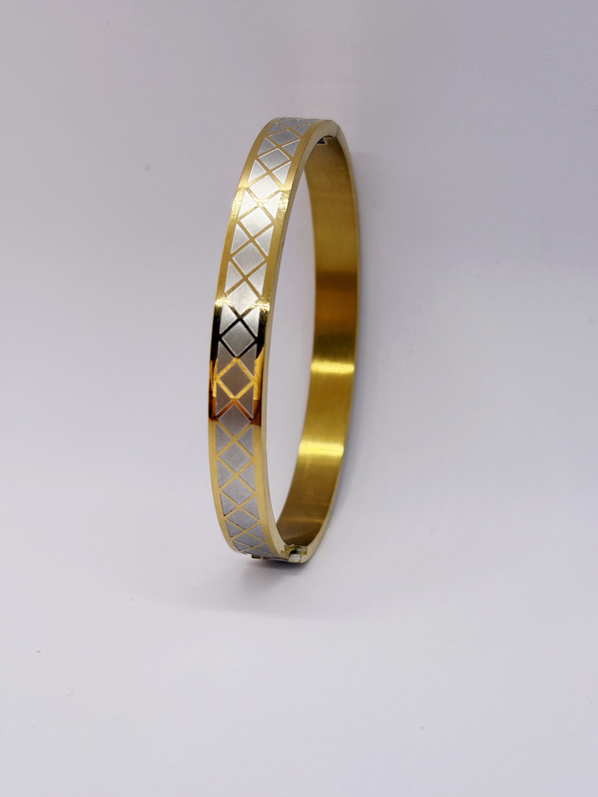 Premium men’s kada with gold plated finish and elegant silver design detailing — anti-tarnish, durable, and perfect for daily wear.