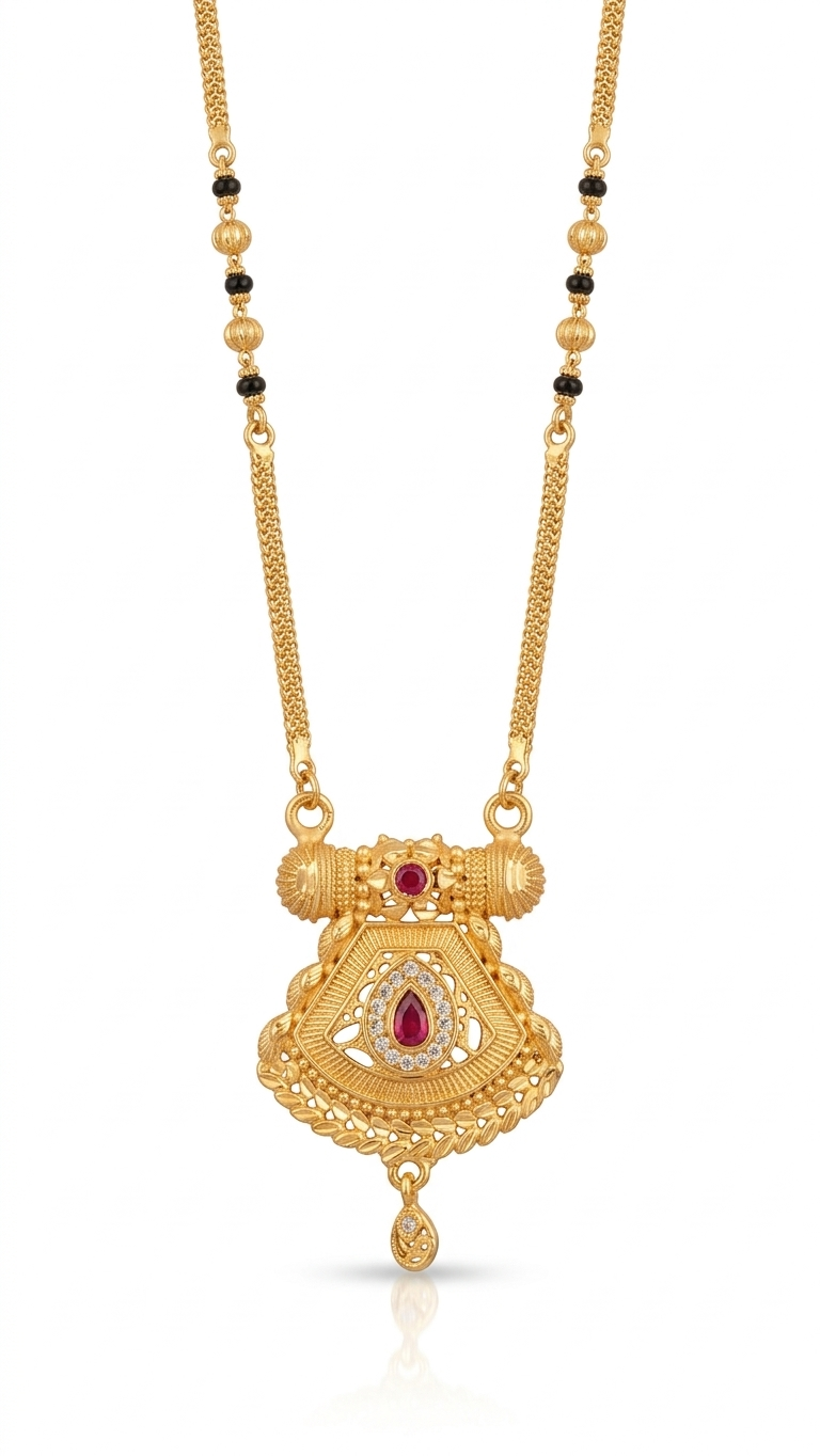 Elevate your style with our Gold-Plated Short Fancy Mangal Sutra Pendant (Poth) adorned with sparkling stones and a touch of diamond. This exquisite pendant blends traditional charm with a modern, fancy design, perfect for women who love elegance with a hint of glamour. Lightweight and durable, it’s ideal for daily wear, festive occasions, or gifting.